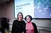 Forskaren Nellie Carlströmer Berthén från Borreliagruppen och doktoranden Eszter Tompa från Linköpings universitet presenterande AxBioTick-studien vid en föreläsning i måndags.