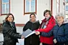 Janina Björni från Rädda barnen, till vänster, tar emot donationen från Marika Lindström, Birgitta Dahlén och Pirkko Gardberg.