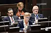 Landskapsregeringen fick försvara sitt förslag till att slopa sjukkostnadsavdraget när lagtinget inledde debatten i måndags. Social- och hälsovårdsminister Arsim Zekaj (S) (till vänster) och finansminister Mats Perämaa (Lib) (till höger) hamnade i hetluften. På bilden syns också civilminister Ingrid Zetterman (Lib) (längst bak) och vice lantråd Annika Hambrudd (C).