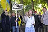 Ebba Busch sade att Putins aggressioner inte stannar vid Ukraina. Bakom henne Uffe Grüssner och Mosse Wallén.