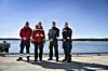 Stephan Remmer, Lars Gottberg, Kim Westman och Andreas Brink berättar om sjösäkerhet nere vid Korrviks hamn i Mariehamn.
