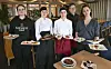 Zaida Engström, Sabina Sjöström, Joanna Sjöholm, Göta Alm-Ellingsworth och Molly Vördgren välkomnar gästerna till övningsrestaurang Hjorten från och med torsdag den 6 mars. Foto: Robert Jansson