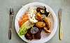 Deltagarna i ”Sätt Åland på tallriken” ska lyfta råvarornas ursprung på menyerna. Så här ser veckans meny ut i Eckerö skola. Foto: Hülya Tokur-Ehres