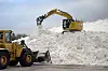Vid Ålandstidningens besök under torsdagen arbetas det febrilt kring – och på – snöberget som bara fortsätter att växa i omkrets.