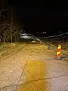 Tobölevägen blockerades under lördagskvällen av en stor tall som vält över elledningen.