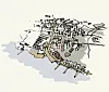 På den här skissen syns en rad nya byggnader längs den östra sidan av Svibyviken.