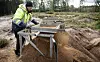 Arkeologen och osteologen Rudolf Gustavsson silar sanden.Foto Daniel ErikssonFoto: DANIEL ERIKSSON