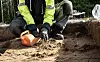 Fynden när man gräver i sandtaget varierar stort. Allt från intressanta fynd som ben , keramik och nötskal till lite mer alldagliga saker som vanlig sten.Foto Daniel ErikssonFoto: DANIEL ERIKSSON