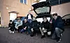 Troy Simons, Zev Englund, Elvis Häggblom, Eva Joelsson, William Smith, Elias Gatelin och Albin Sundblom på parkeringen utanför Mug på Neptunigatan.Foto: DANIEL ERIKSSON
