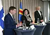 Ålandsminister Thomas Blomqvist (SFP), lantrådet Veronica Thörnroos (C) och vice lantrådet Harry Jansson (C).