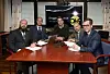 Obunden samlings lagtingsgrupp, bestående av Johan Lindström, Andreas Kanborg, partiordförande Marcus Måtar, Stellan Egeland och Christian Wikström presenterar partiets skuggbudget.