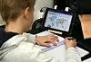 Under mattelektionen kan eleverna se både läroboken och lärarens uträkningar.