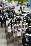Efter dimissionen i Alandica tågade studenterna till Ålands lyceum med fanbärare i täten och ”Studentsången” som ackompanjemang.
