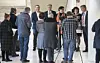 Det var glada miner när blivande lantrådet Veronica Thörnroos (C) presenterade vilka partier som skulle ingå i den nya landskapsregeringen. I dag är samstämmigheten i koalitionen betydligt mindre och sprickorna betydligt fler.Foto: Daniel Eriksson