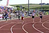 Julius Holmberg (längst till höger) var tvåa i sitt försök på 100 meter.