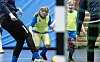 Att parasporten kännetecknas av mycket gemenskap och glädje är tydligt när Ålandstidningen hälsar på under en träning. Här firar Josefina Eriksson ett mål.Foto: Daniel Eriksso