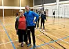 Ålands idrotts Lena Eriksson och Jomala IK:s Thomas Nordlund under ett träningstillfälle i Strandnäs skola.