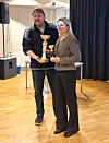 Volleybollens sektionsordförande Conny Sandell ger pokalerna gällande ”funktionärspriet” till Natalia Sergeeva.