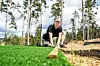 Det återstår lite justeringar och finputs innan Vesterkalmare DGP är redo att ta emot europatouren. Här ser vi Henrik Engblom, en av många ideella krafter, fixa ett helt nytt och förlängt utkast på hål tio.