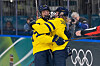 Peter Lundberg är imponerad av sitt U20-landslag, som alltså lyckades vinna dagens landskamp mot Sverige. På bänken syns även åländska Oscar Wiklöf, som tvåa från höger.