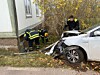 Personbil har kört in i husvägg