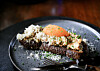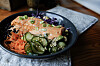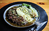 Asiatisk biffsallad med jordnötsdressing och frisk kokos-limeglass