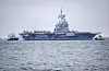 Det franska hangarfartyget Charles de Gaulle på väg in i Malmö hamn.