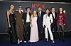 Familjen Beckham i samband med premiären av Netflix "Beckham" 2023. Femma från vänster är David Beckham, därefter Victoria Beckham, Brooklyn Beckham och Nicola Peltz. Arkivbild.