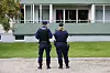 Polis på plats utanför huset under lördagen där en ambulanssjukvårdare blev dödad i tjänsten av en man i 25-årsåldern i Harmånger i Nordanstig kommun. Mannen greps på plats misstänkt för mord.