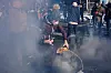 En demonstrant häller vätska på en tårgasbehållare i samband med protesterna mot federala ICE:s dödsskjutning av en amerikansk kvinna i Minneapolis i Minnesota. Bild från förra veckan.