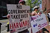 Demonstranter protesterar utanför den federala domstolen i Boston där Harvarduniversitetet överklagade Trumpadministrationens beslut att frysa över två miljarder dollar i federal finansiering. Bild från i juli.