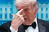 USA:s president Donald Trump håller en pressbriefing kort efter lördagens avbrutna galamiddag för Vita husets journalistkår.
