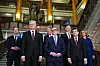 Ulf Kristersson och sju kollegor på mötet i Helsingfors: Gitanas Nauseda (Litauen), Kristen Michal (Estland), Donald Tusk (Polen), Petteri Orpo (Finland), Rosen Zjeljazkov (Bulgarien), Nicusor Dan (Rumänien) och Evika Silina (Lettland).