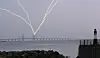 Blixten slår ner i den ena pylonen på Öresundsbron. Arkivbild.