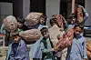 Pojkarna och deras familjer har kommit till Afghanistan från Pakistan och bär på kuddar som de ska ta med sig till huvudstaden Kabul, som är nästa stopp. Bilden är tagen i början av juni.