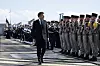 Frankrikes president Emmanuel Macron anländer till marinbasen på Île Longue på måndagen.