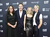 Producenten Elizabeth Karlsen, skådespelarna Jason Isaacs och Gillian Anderson samt regissören Marianne Elliott inför visning av filmen "The salt path" på Toronto International Film Festival 2024. Nu anklagas författaren till boken filmen baseras på för att ha ljugit om flera händelser.