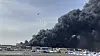 På bilden ses en helikopter vattenbomba det gigantiska rökmolnet. Bilden har tillhandahållits av den iranska nyhetsbyrån Isna.