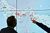 Anställda på ett tyskt rederi följer sjötrafiken i Hormuzsundet på en skärm.