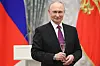 Rysslands president Vladimir Putin skålar i samband med en prisceremoni i Kreml i november 2025.
