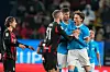 Napolis Scott McTominay, i blått, i bråk med Milans Strahinja Pavlovic under semifinalen av den italienska supercupen. Milan kommer att spela utomlands, i Australien, i ligan också i februari.
