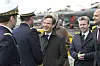 Statsminister Ulf Kristersson och försvarsminister Pål Jonson på det franska hangarfartyget Charles De Gaulle i Malmö hamn.