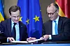 Statsminister Ulf Kristersson och Tysklands förbundskansler Friedrich Merz vid undertecknandet av ett fördjupat svensk-tyskt partnerskap.