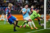 Viktoria Plzens Karel Spácil sätter 3–0 bakom Malmö FF:s målvakt Robin Olsen i Europa League-matchen i Tjeckien.