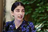 Klimatminister Romina Pourmokhtari (L) vid regeringens sommarfika på Rosenbads innergård på torsdagen.