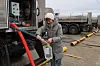 En kvinna häller upp vatten som distribueras av de Rysslandslojala myndigheterna i staden Donetsk i östra Ukraina. Bilden togs förra veckan.