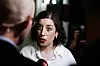 Liberalernas partiledare Simona Mohamsson (L) möter media efter att hon har blivit omvald som partiledare under partiets extrainsatta landsmöte.