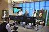 Miljöpartiets språkrör Daniel Helldén, partisekreterare Katrin Wissing och språkröret Amanda Lind.