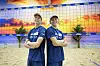 Jonatan Hellvig och David Åhman vid en pressträff med de svenska guldhoppen inför beachvolleyboll-VM.