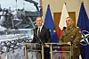Biträdande försvarsminister Cezary Tomczyk (till vänster) och generalstabschef Wieslaw Kukula presenterar ett program som ska öka säkerheten vid Polens östra gräns. Arkivbild.